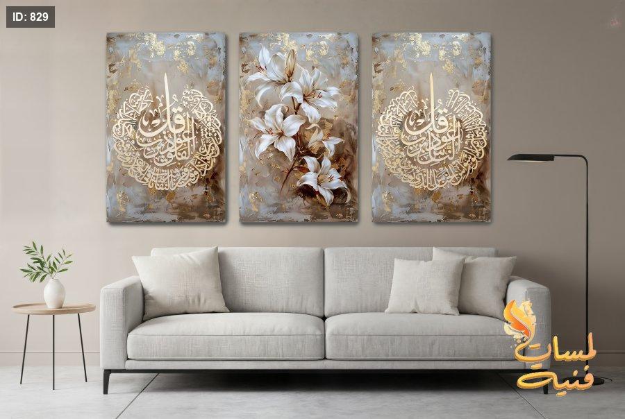 طقم ثلاثي بيج وذهبي الفلق والناس و ورد