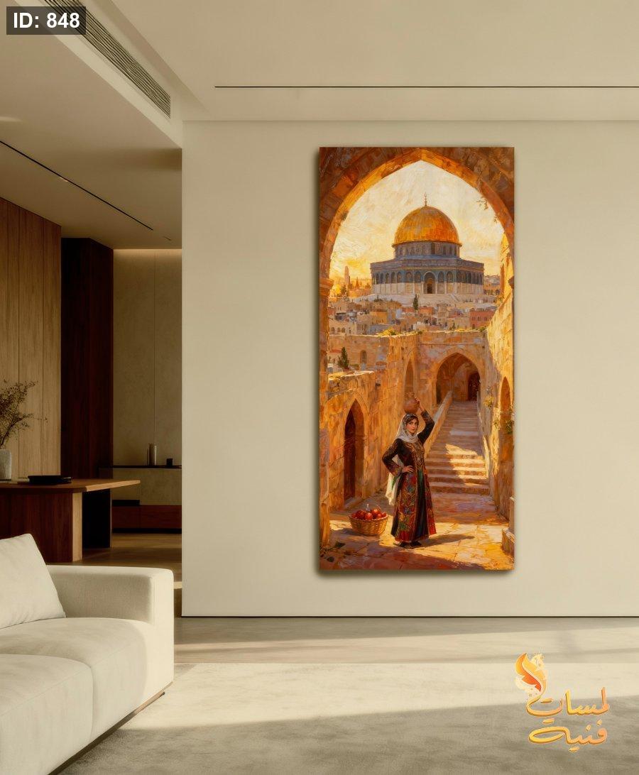 لوحة فلاحة تحمل جرة في ساحة المسجد الاقصى