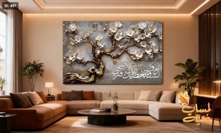 لوحة ورد ابيض وذهبي وسكني ولسوف يعطيك ربك