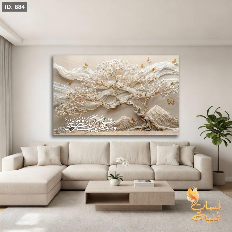 ولسوف يعطيك ربك مع شجرة لون بيج وذهبي وابيض