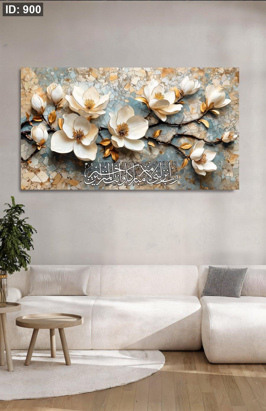 لوحة فازة ورد زهر وأتغفر الله لون سكني وازرق
